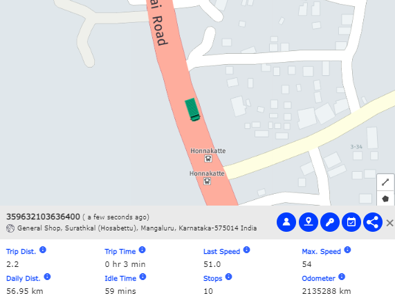 You can select the vehicle from the map and all the relevant details will be displayed in the info-window.