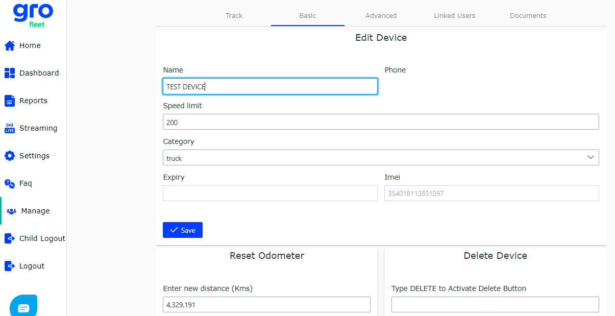 You can update your vehicle’s Odometer reading from the Basic settings by visiting the Edit Device page. This is an App only feature.