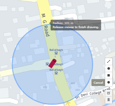· Show/hide geofence - It is used to show/hide all the added geofences as default